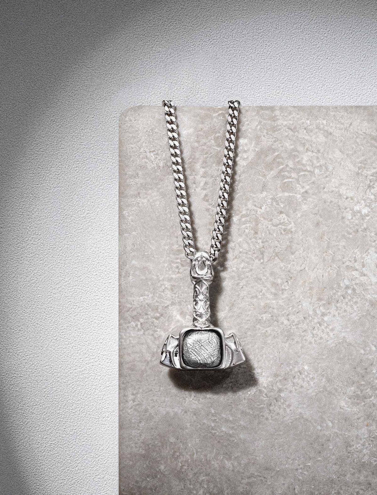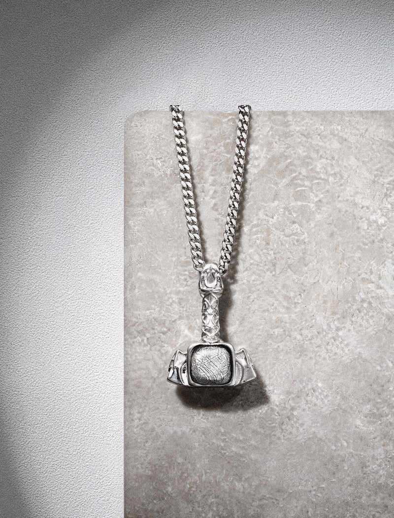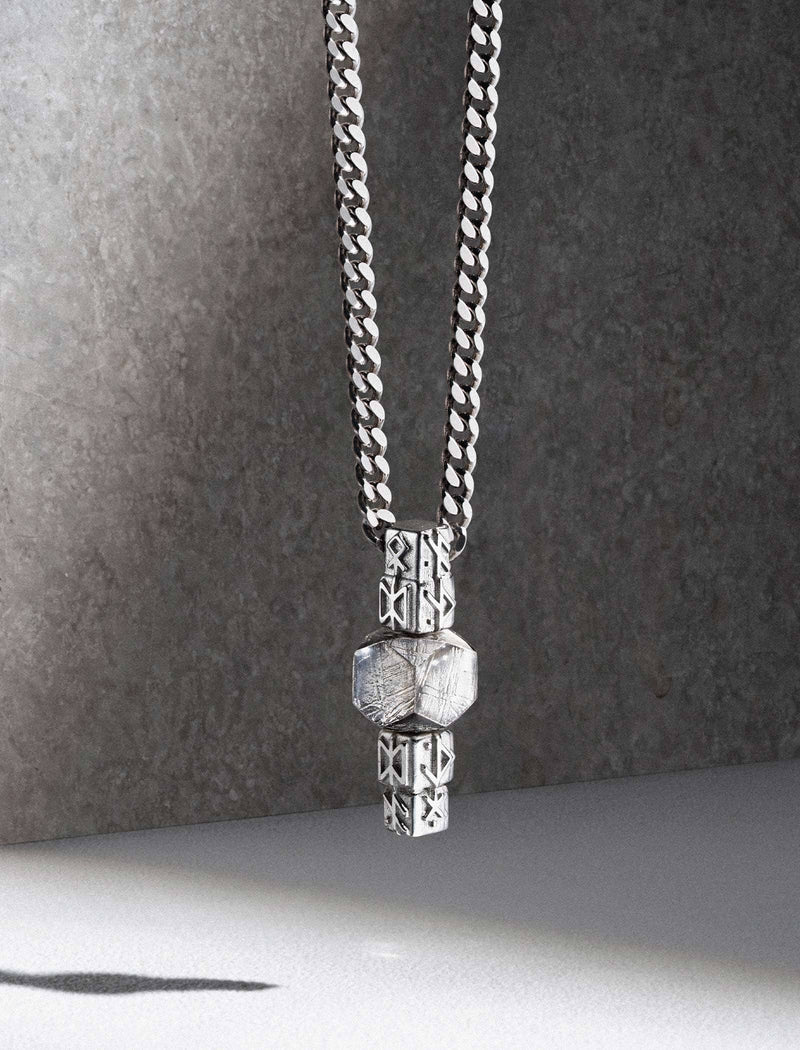 Meteorite and gemstones, sourced from around the world — each carrying millions of years within. We work with their natural texture, shaping them into talismans for the modern man.