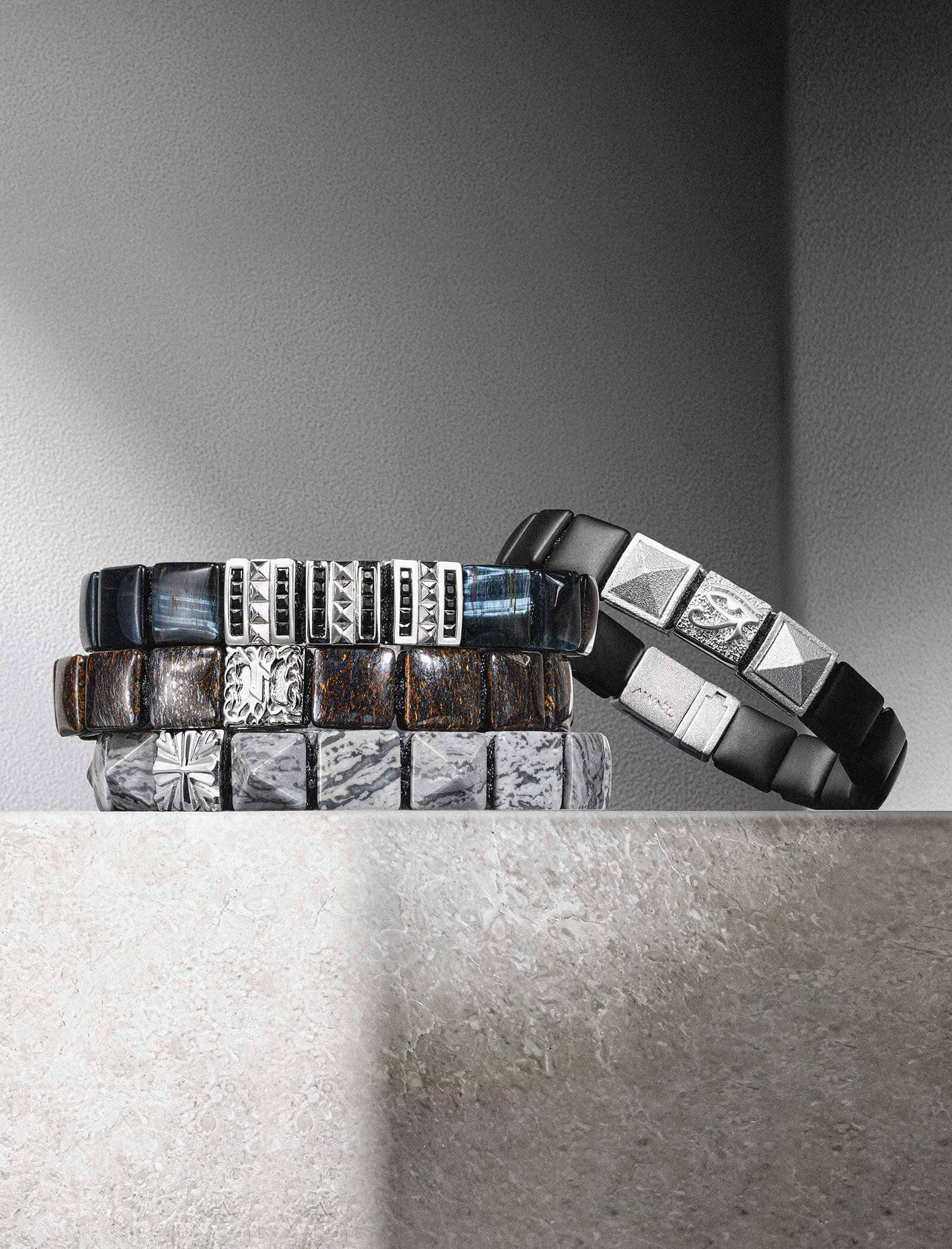 AWNL以隕石與天然原石製作珠寶。來自世界各地的石材,各自攜帶著漫長的地質時間。我們保留材料天然的質地,將其製成現代男性佩戴的護身符。