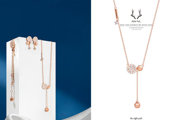 AWNL暗夜公園M隕石項鍊,靈感來源於THE NIGHT PARK國際暗天協會。這個國際性非盈利組織,致力於讓大家明白人類是如何與夜空聯繫的。提醒我們不要因為居住在城市,而脫離夜空,就如同不要因為日常的煩瑣,遺忘浪漫的存在。以此為啟發,我們用璀璨銀河與漫天繁星的形態設計出了這條隕石項鍊。
