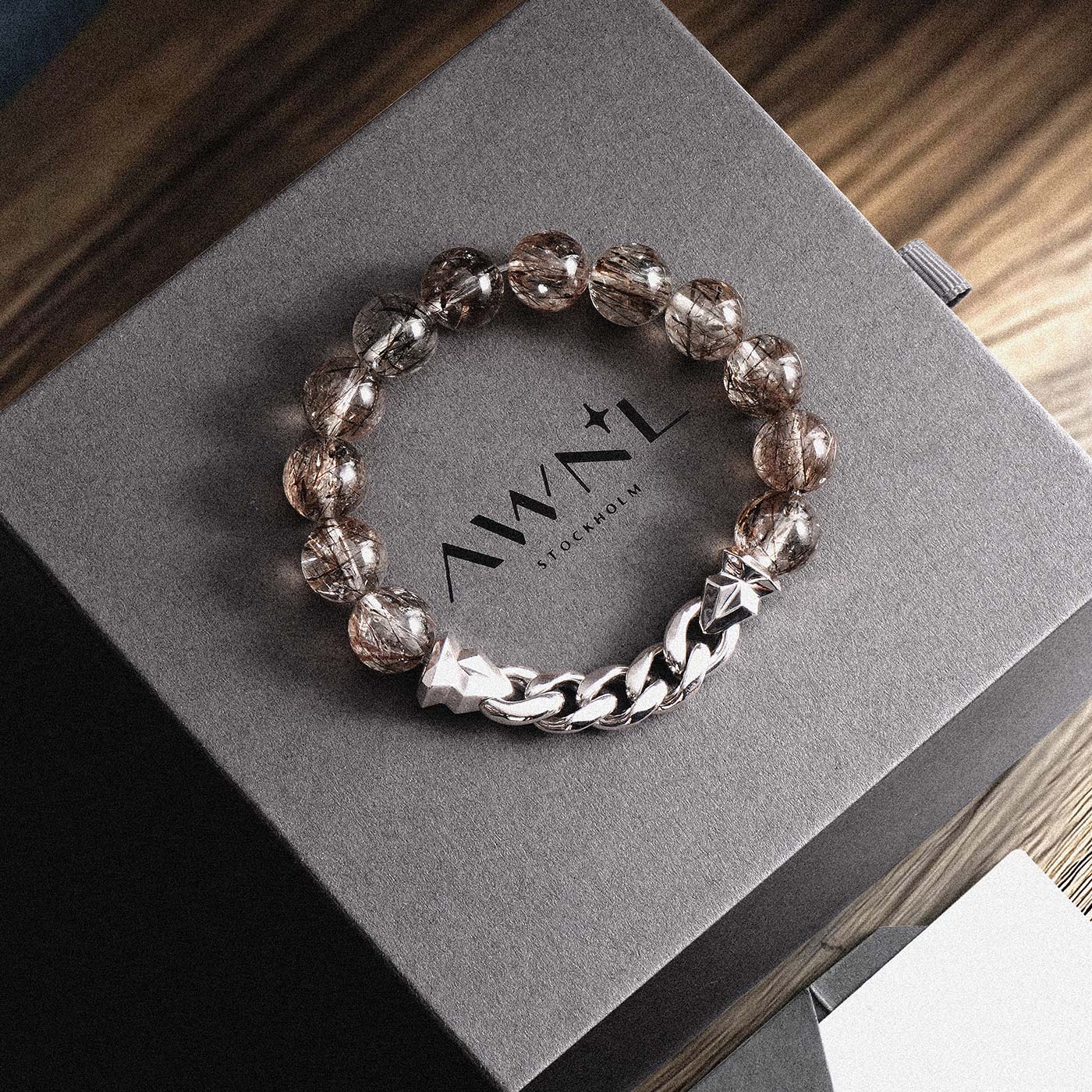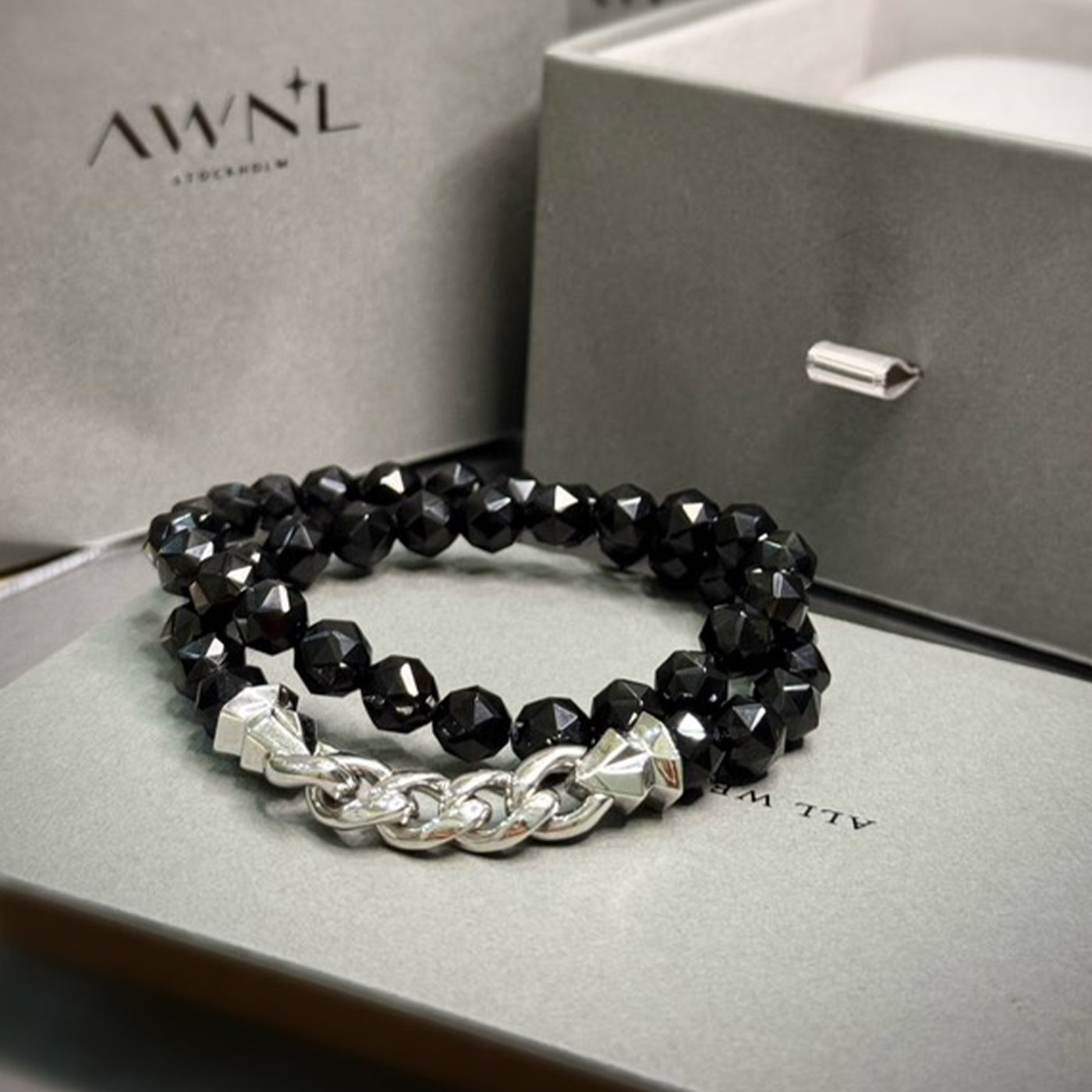 融匯東方神秘與義式奢華——AWNL 黑金超七半銀鍊男士手鍊,半銀鍊半水晶設計,打破傳統侷限。獨特的雙材質結合,完美詮釋現代紳士的多元特質,為日常配飾帶來全新可能。