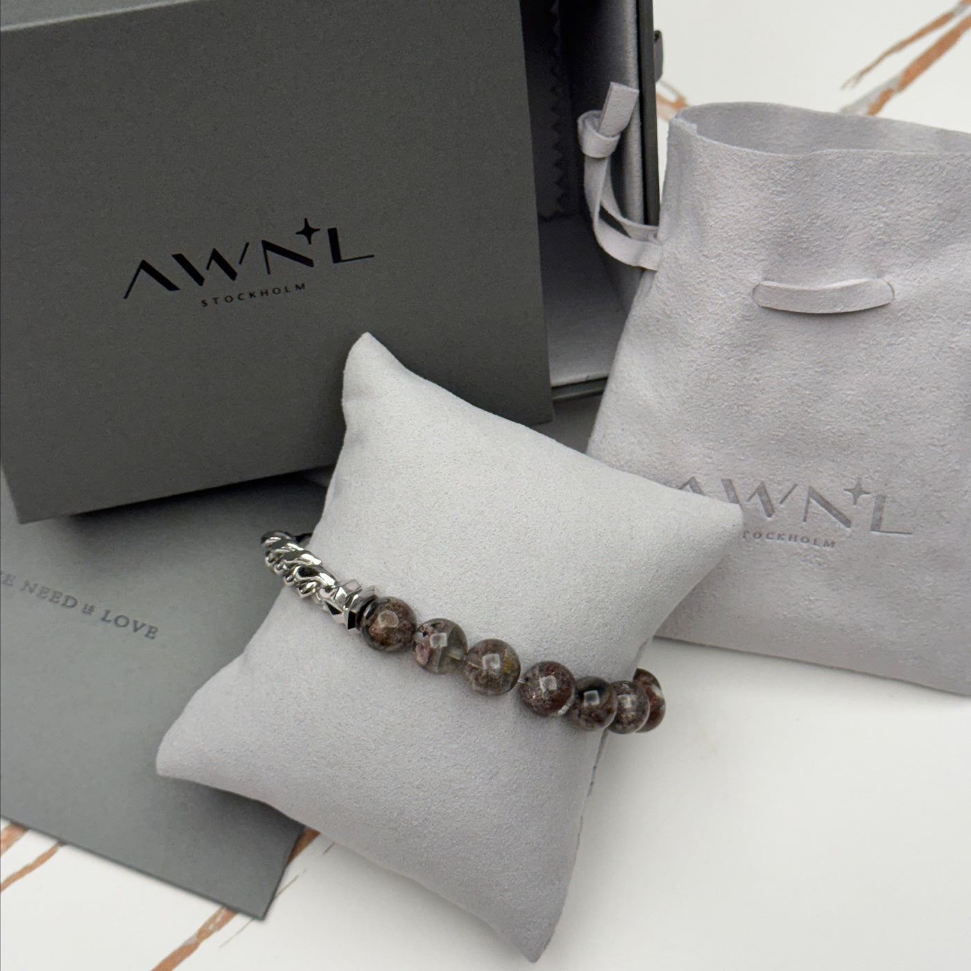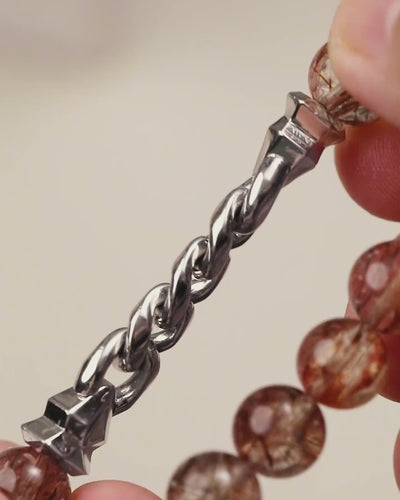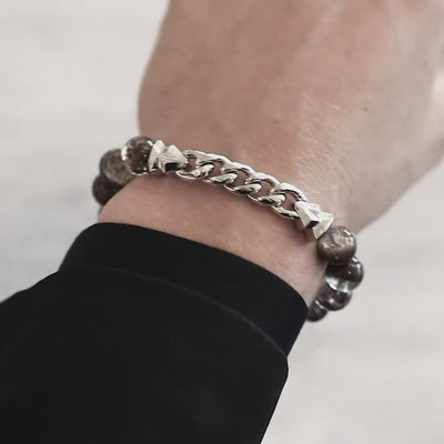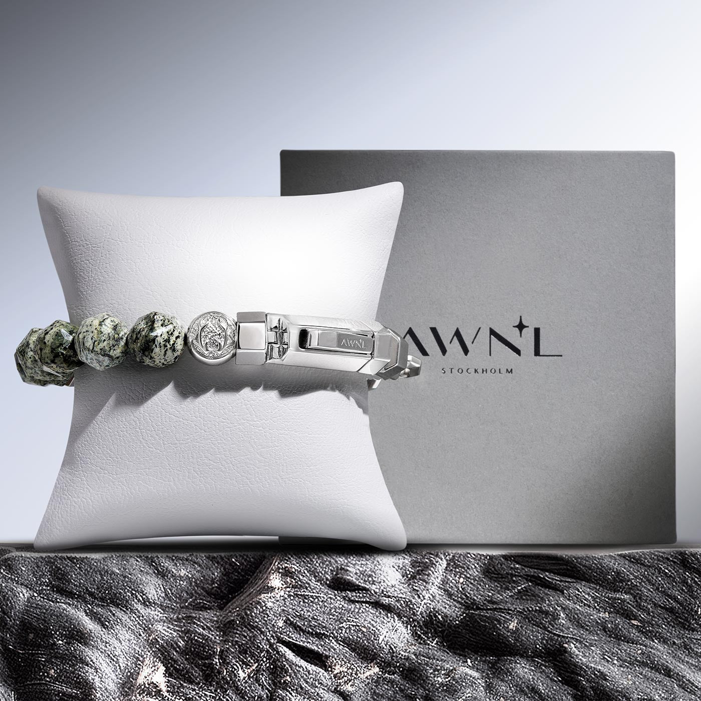 融匯東方神秘與義式奢華——AWNL 綠幽靈半銀鍊男士手鍊,半銀鍊半水晶設計,打破傳統侷限。獨特的雙材質結合,完美詮釋現代紳士的多元特質,為日常配飾帶來全新可能。
