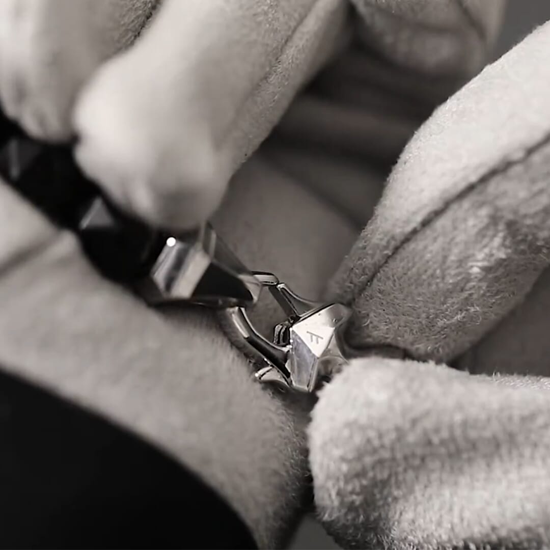 精湛的切割工藝,不僅完美展現精心琢磨的寶石光澤,更確保絕佳配戴體驗。每一個細節都彰顯匠心獨具的精工細作,為當代品味紳士打造專屬的靈性配飾。