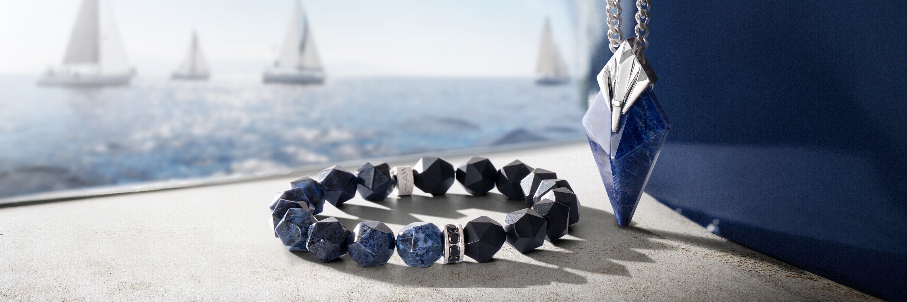 以深邃的藍線石為主角,搭配精緻的純銀鑲嵌與絲絨質感的寶藍絲絨。每一款設計都像是擷取了夜空中最璀璨的星辰,與深海最純淨的色彩。切面藍線石在光影中流轉,彷彿夜空中的閃爍星辰與平靜海面的月光交織,展現獨特的優雅魅力。