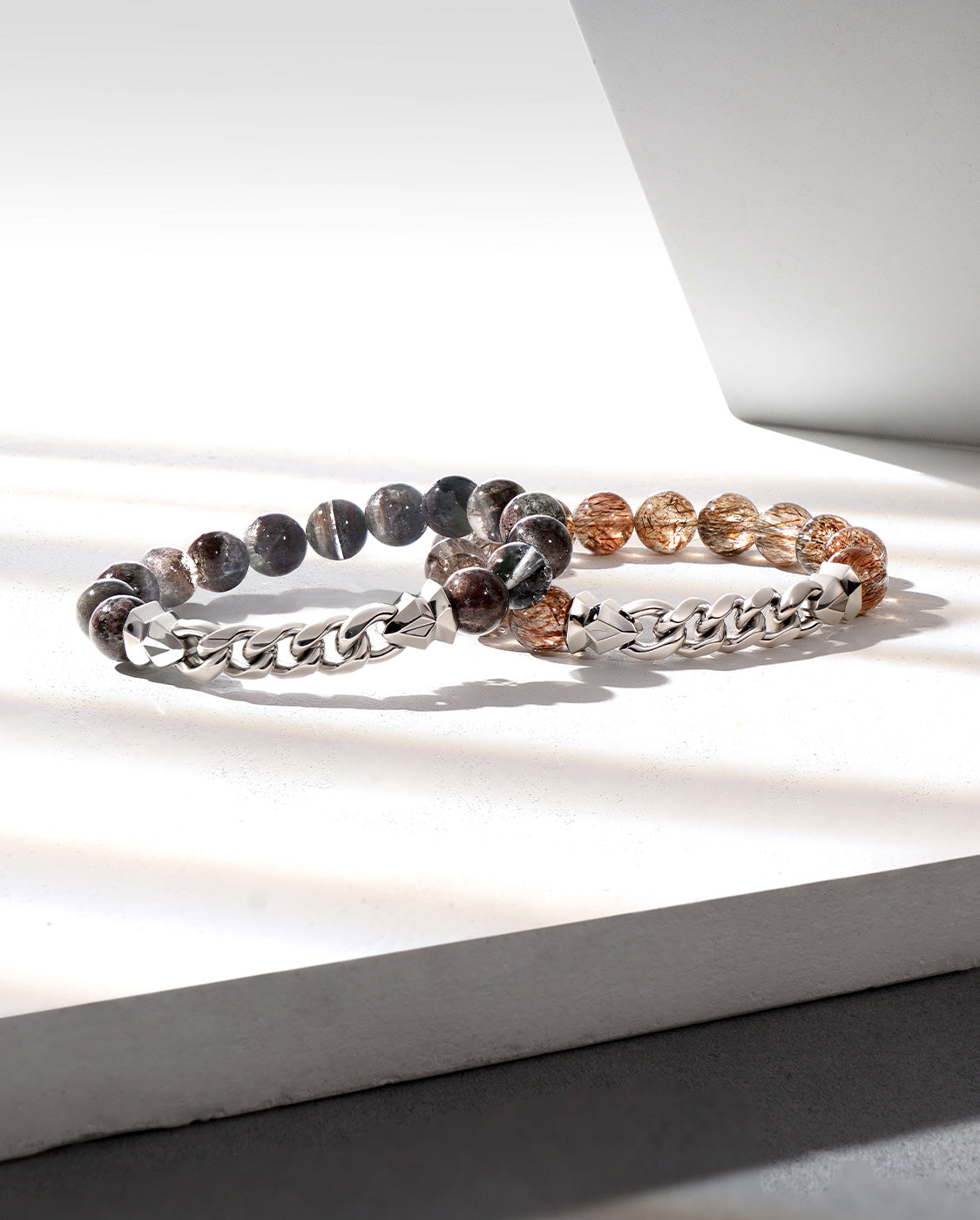隨著日復一日的陪伴,每顆珠面將靜默記錄屬於你的獨特印記。或為沉穩正裝添加內斂個性,或為隨性休閒注入精緻質感。這是一個懂得何時成為焦點、何時化為細節的男士靜力配飾系列。