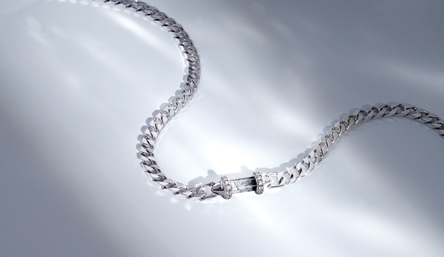 數億年前,M隕石從宇宙誕生後墜落至現今瑞典北部,這種隕石極為稀有。它獨特的金屬質地與美麗的蝕刻圖案賦予了其獨特的風貌。M隕石幾乎不具放射性,安全佩戴無虞。經過鍍銠處理,不僅能防止隕石變色,還對金屬過敏者友好。AWNL以精湛的技術處理隕石,將古老的宇宙能量與現代設計完美融合,呈現出獨特的珠寶作品。