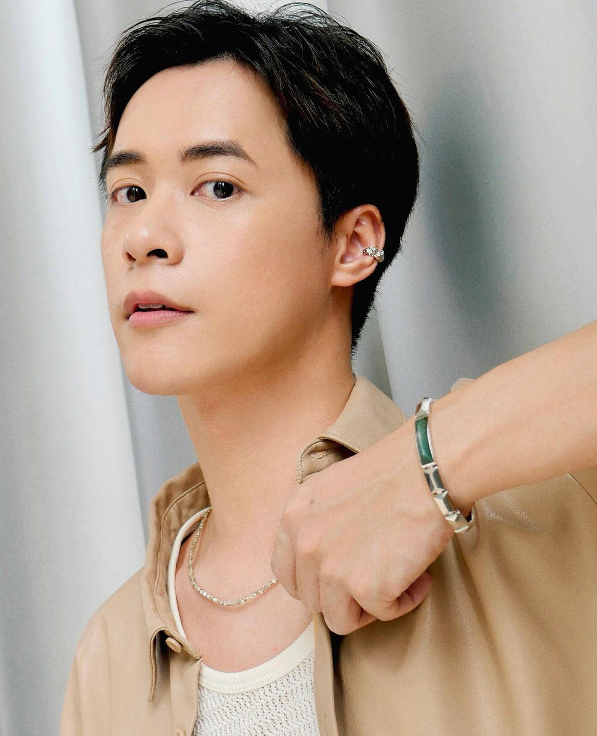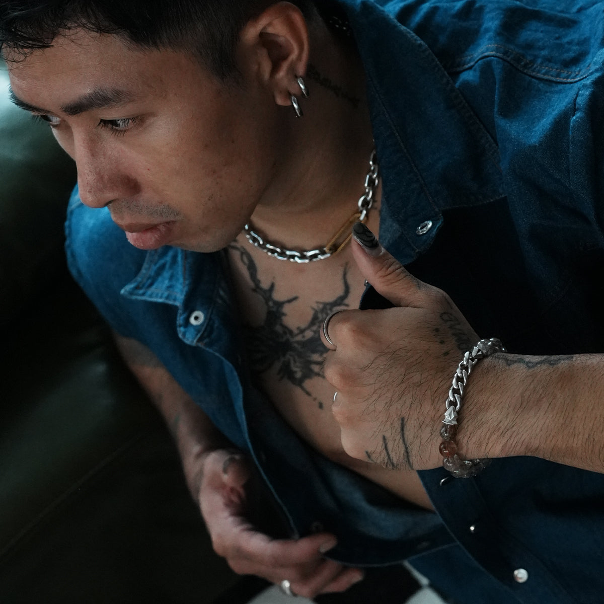 彩虎眼 半銀鏈 雙圈男士手鍊