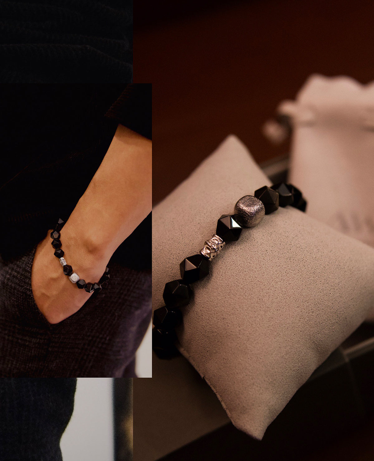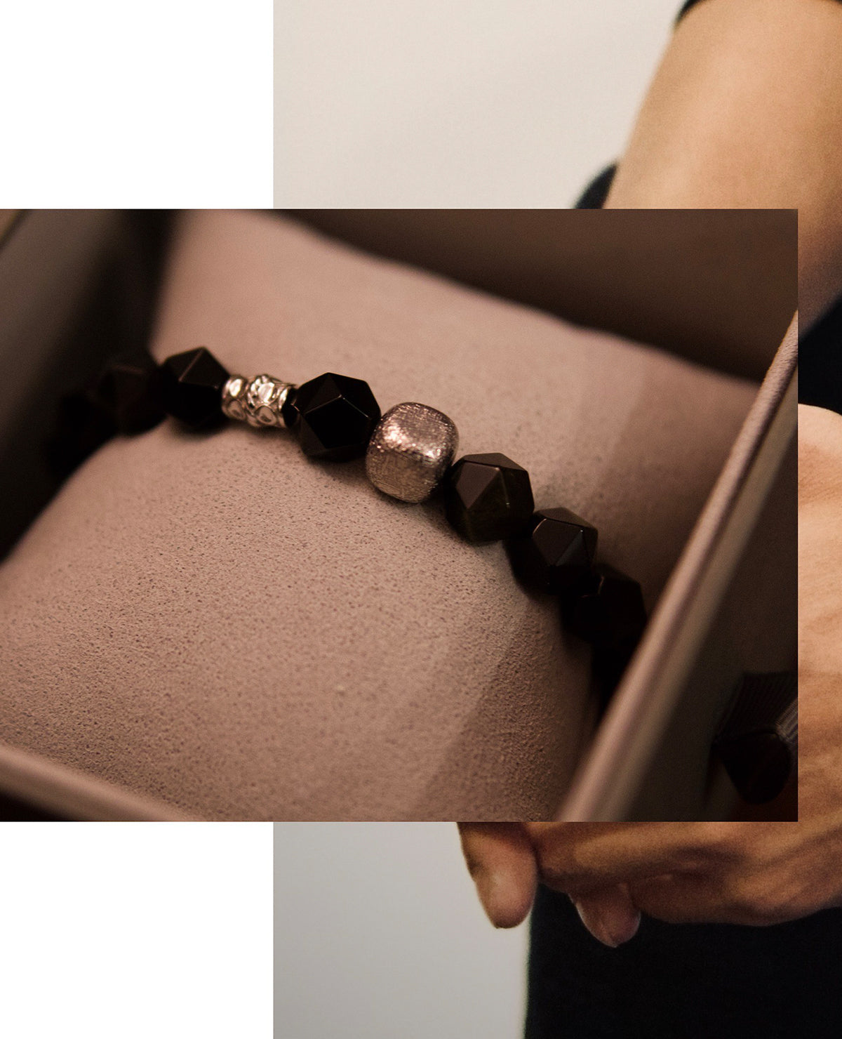 瑞典隕石 金曜石 祈福轉運 男士手鍊