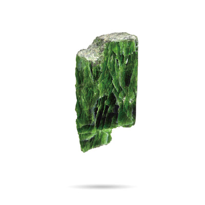 透輝石以其清新的綠色調呈現出生命力與活力,在不同角度下展現出細微的色彩變化。它不是艷麗的存在,而是生機的代表——如同五月盛開的新葉,青翠而富有生命力。