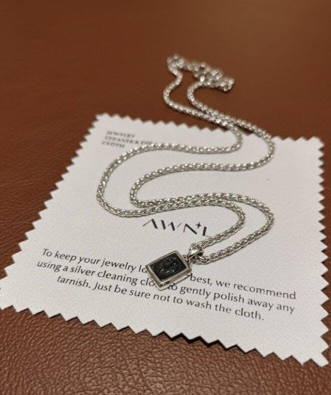 這是一種立體編織的鍊體,由四股金屬相互交錯,形成如同麥穗般的「V」字紋理。不同於鬆散的環扣鍊,小麥鍊結構緊密,手感如同一條柔軟的金屬繩索。它呼應著克洛諾斯「收割」的意象,同時提供了極佳的佩戴舒適度與垂墜感。50公分的長度,讓墜飾自然落在胸口最平穩的位置。