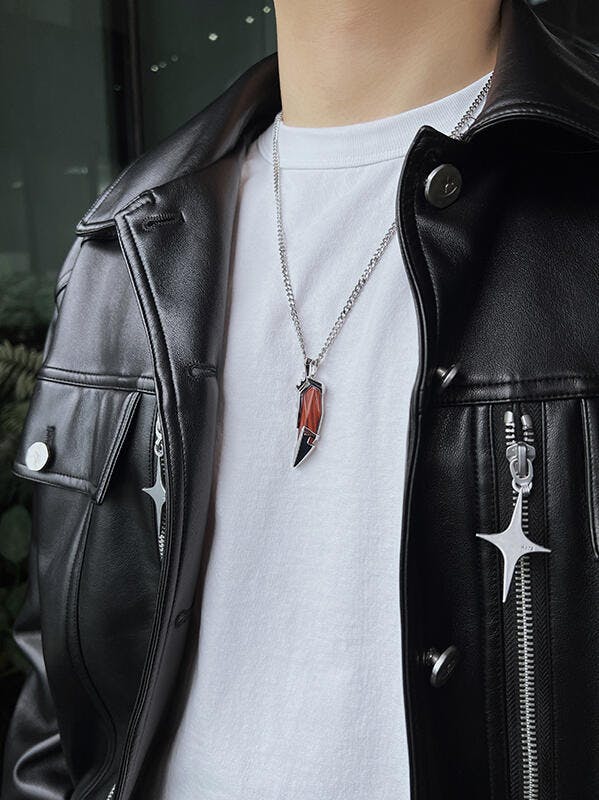 項鍊造型銳利卻不失精緻,其線條流暢地追隨了自然界最有效的形態。虎牙不僅是攻擊的象徵,更是生存的工具——提醒佩戴者在現代生活中保持敏銳直覺與堅定意志。