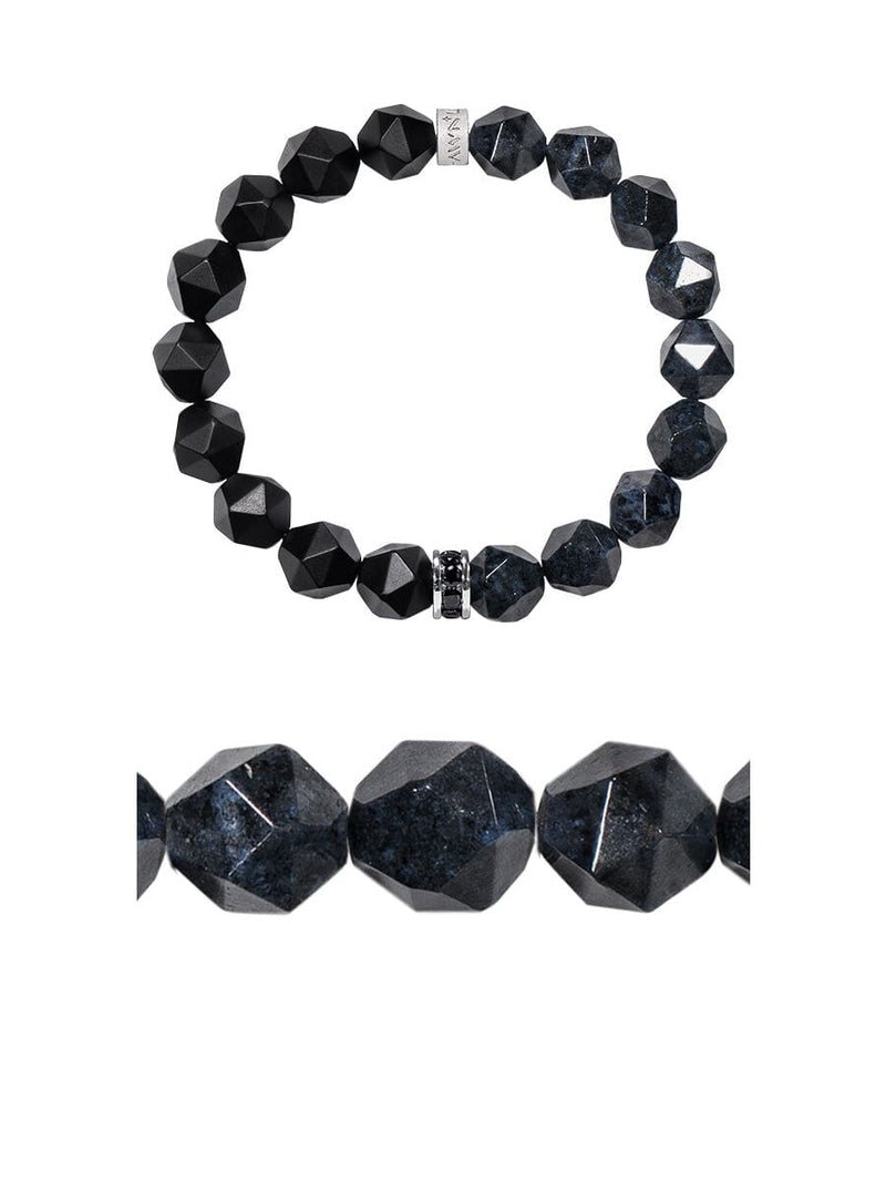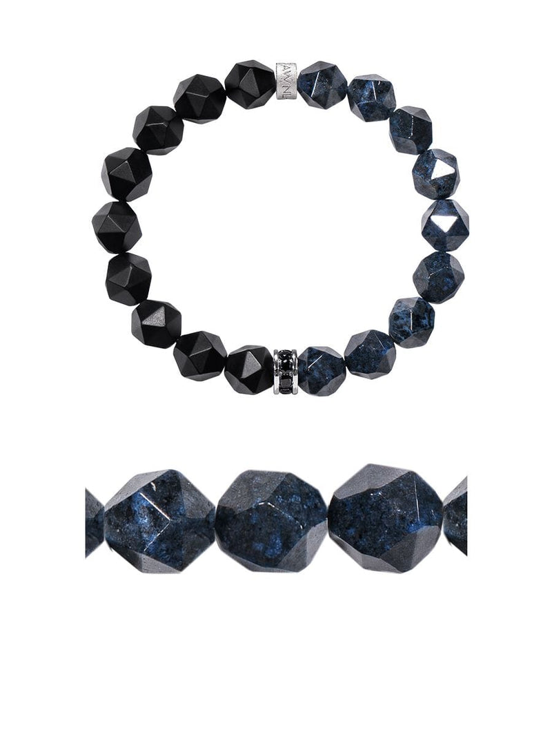 這款手鍊設計延續了Vagabond系列的簡約美學,925純銀扣件作為兩種石材的交界,打造出深沉內斂的視覺張力。黑瑪瑙淨化心靈、釋放束縛的特質,與藍線石帶來的冷靜、智慧完美融合。這種平衡的搭配,為佩戴者帶來深沉的洞察力與堅定的意志和勇氣。