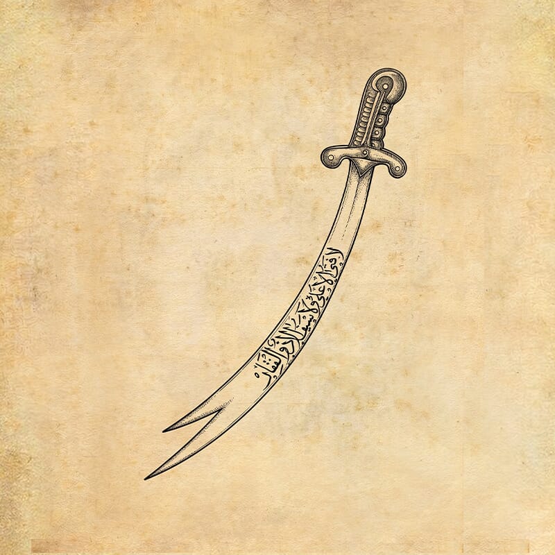 中央的佐勒菲卡爾劍(Zulfiqar)銀飾採用精確的立體雕刻工藝,雙刃分叉的特殊造型完整再現了這把伊斯蘭傳說中的聖劍。銀件表面經過手工拋光,呈現出柔和卻堅定的光澤,與紫幽靈水晶的神秘色調形成視覺平衡。