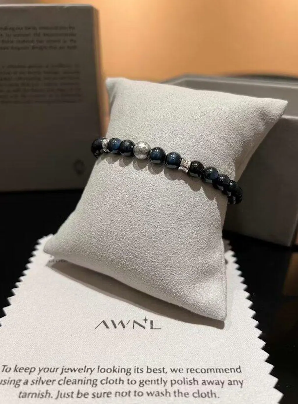 6mm纖細珠徑的確保佩戴時如北歐編織甲冑般自然貼合手腕,彈性繩配合快拆扣的設計適應不同手型而無束縛感。在每一次握手、每一個手勢間悄然流露內在的沉穩氣場。