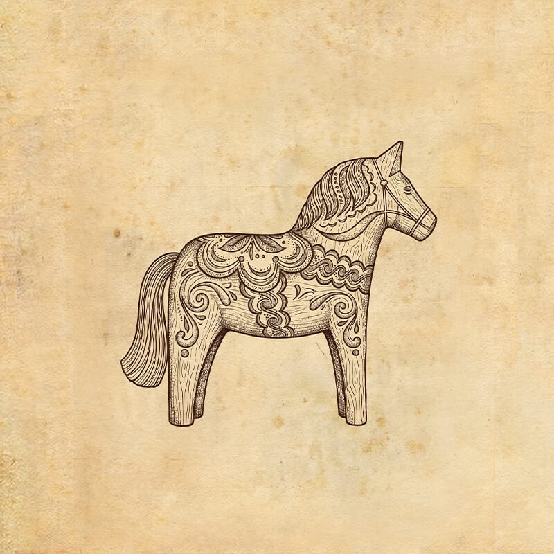 達拉木馬是瑞典Dalarna地區的傳統手工藝品,象徵著堅韌、勇敢和樂觀的精神。伐木工人們在漫長而寒冷的冬季,用簡單的木頭雕刻出達拉木馬,為家人和孩子們帶來溫暖和希望。工匠們在嚴冬中手工雕刻的達拉木馬,象徵北歐人對黑暗時節的應對之道——用創造力抵抗寂寞。